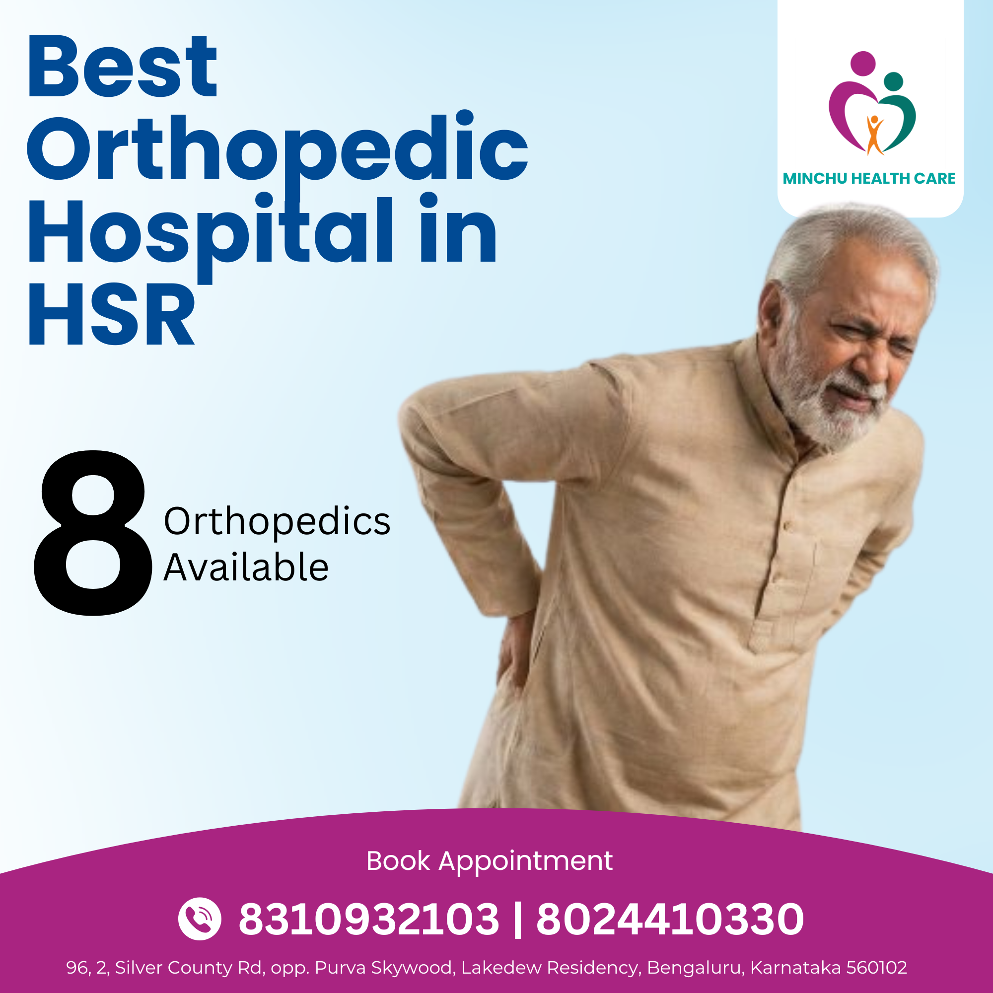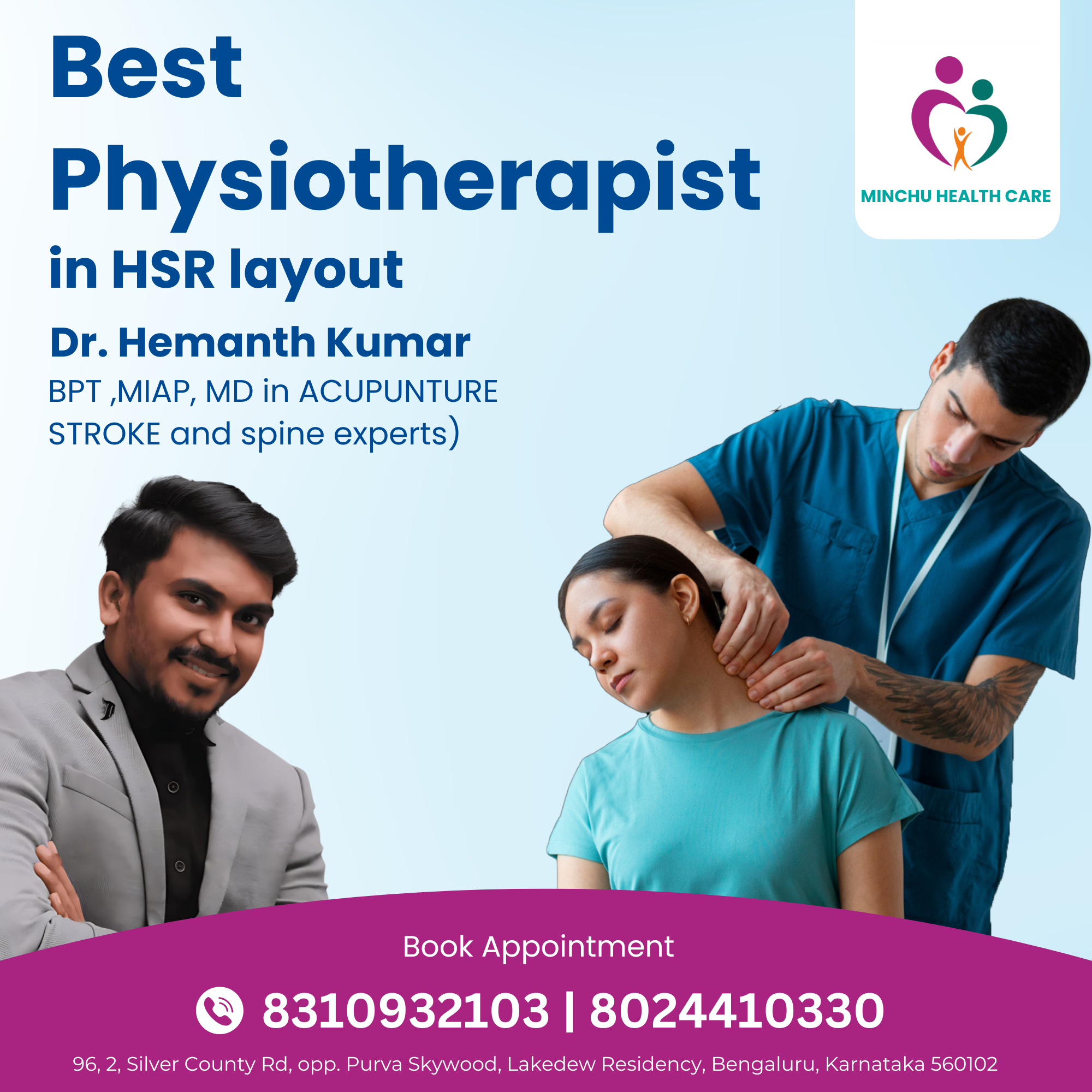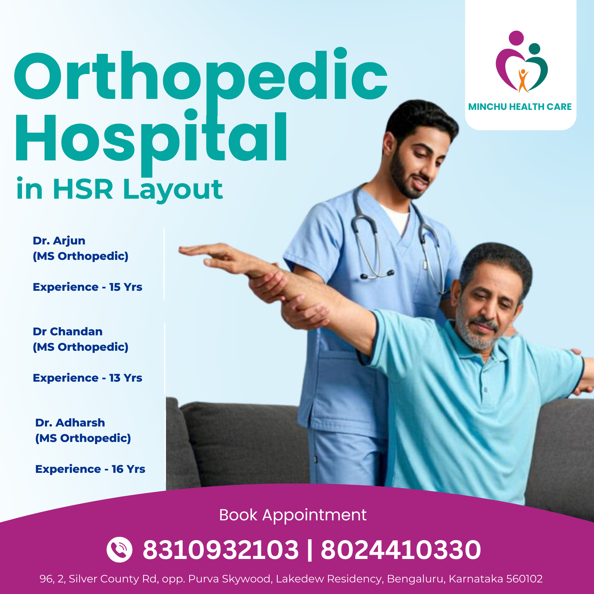 “Minchu Health Care - Your Trusted Healthcare Partner in Bangalore”We are Minchu Health Care Center, a brand new comprehensive Multi Speciality Hospital facility in Bangalore! Our dedicated team of medical professionals is committed to providing exceptional care for all your family's needs.Minchu Health Care is a premier healthcare provider in Bangalore, dedicated to delivering exceptional patient care through advanced medical expertise and compassionate service. Our core values of integrity, excellence, and empathy guide our mission to improve the health and well-being of our community. We specialize in various medical disciplines, including Physiotherapy, Orthopedic, General physician,...